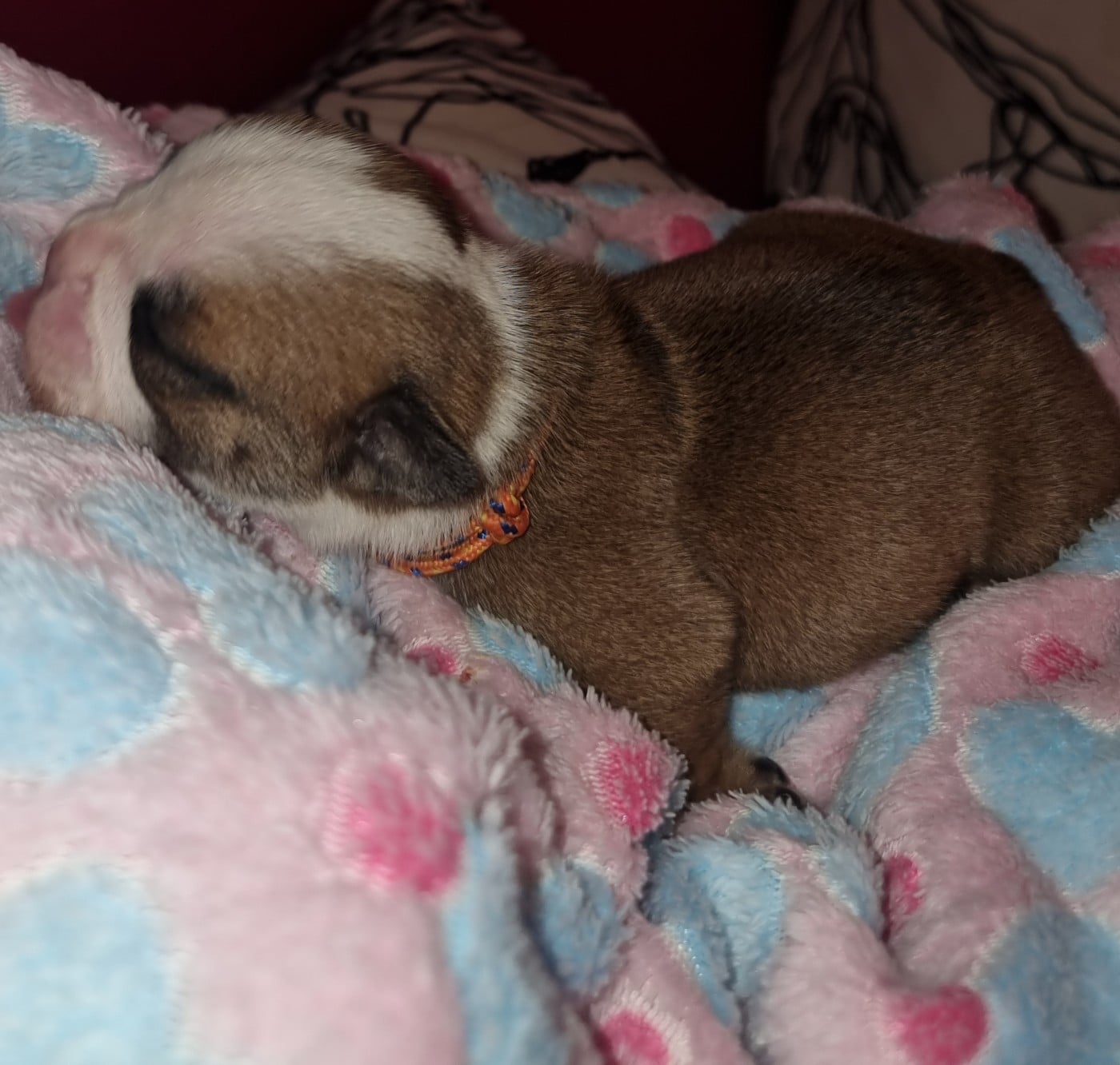 Bella Rose Charmante femelle à la robe Fauve Rouge avec de légères marques blanches, bien réparties. Poids de naissance 303g. Elle présente déjà une belle ossature, un dos large et une construction équilibrée, prometteuse pour son évolution. Chiot calme et bien posé, élevée au sein de la famille avec beaucoup de douceur et d attention.